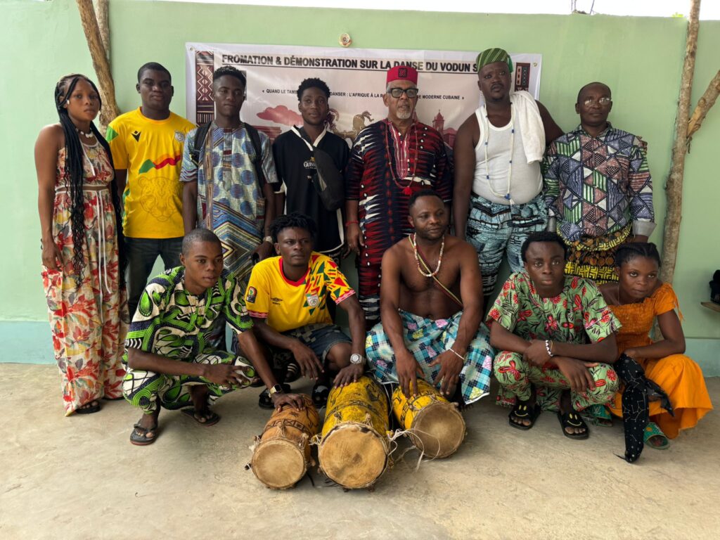 El encuentro se inició con la explicación del principio fundamental que rige toda manifestación ritual: la consulta previa a los ancestros. Este acto, indispensable dentro de la cosmovisión vodùn, constituye la solicitud formal de permiso para que la presentación pueda realizarse en armonía, garantizando la protección espiritual tanto de los ejecutantes como de los visitantes. Sin esta anuencia ancestral, la danza y el canto perderían su legitimidad ritual y su eficacia simbólica.